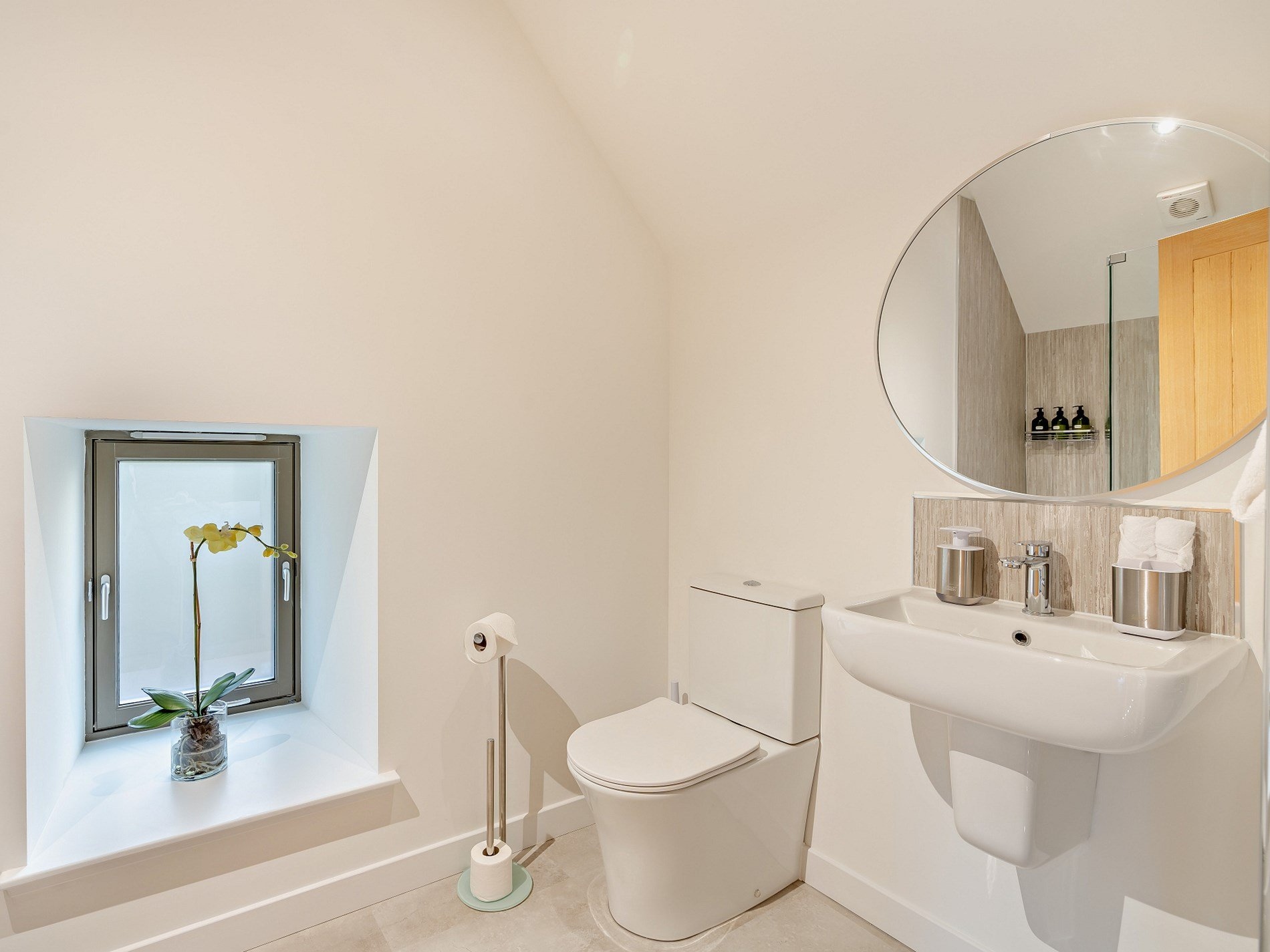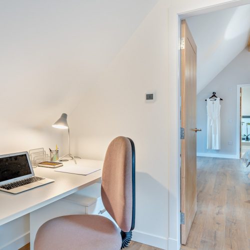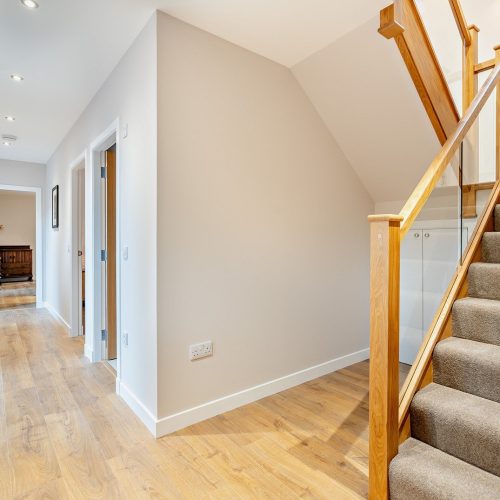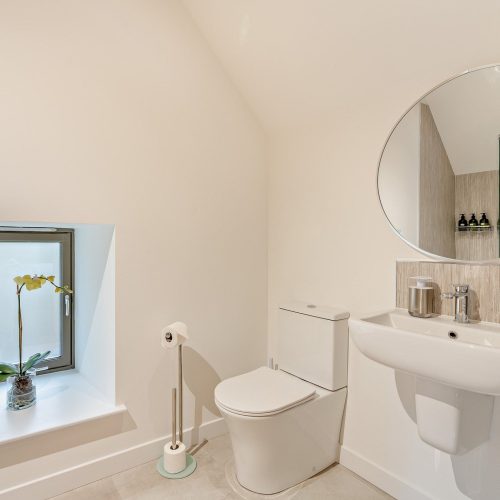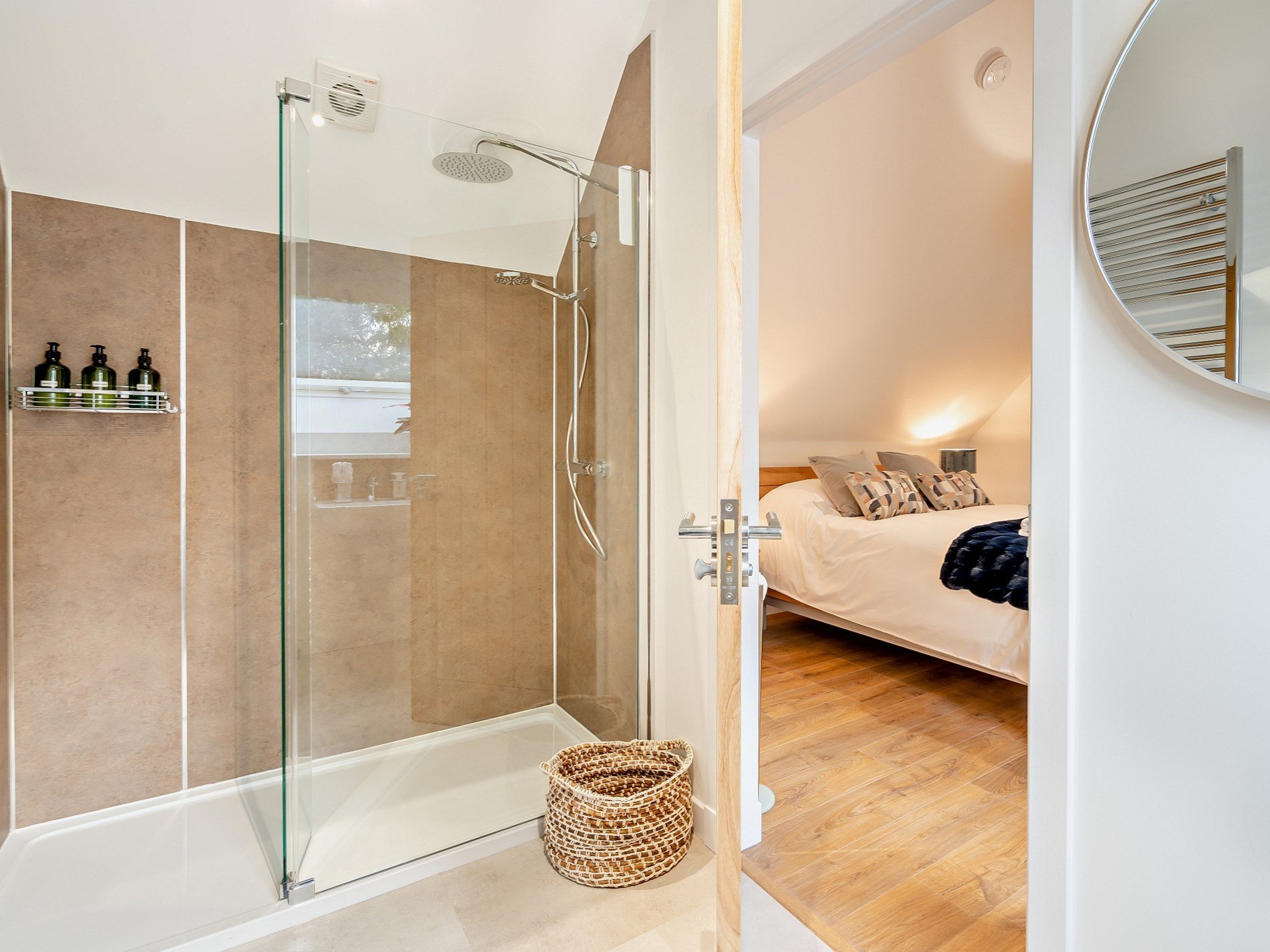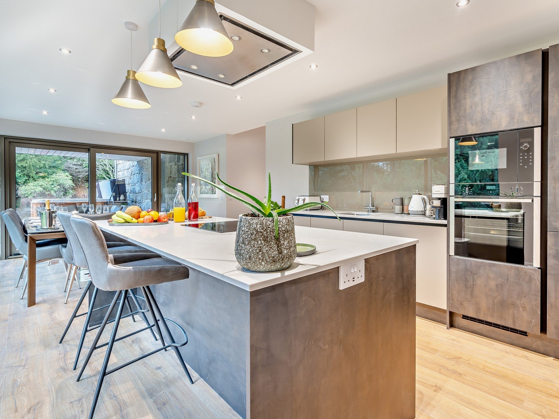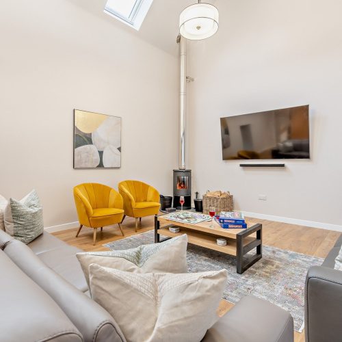 Stepping through the front door into a generously spacious entrance hall, a bench invites you to pause, providing a practical space to hang coats and remove shoes. With underfloor heating throughout the ground-floor area, your toes will be toasty in no time. The lounge, with a double-height ceiling, offers an airy ambiance complimented by the addition of a wood burner, promising cosy evenings. Unwind in front of the large Smart TV with a state-of-the-art sound bar creating an immersive experience. The contemporary open-plan kitchen, with floor-to-ceiling windows, is the heart of the house with a spacious and well-equipped kitchen for those who enjoy cooking. Slide open the kitchen’s patio doors to unveil a covered seating area, seamlessly connecting indoor and outdoor spaces. A utility room and WC provide practicality and convenience. The ground floor hosts two thoughtfully designed bedrooms, the first featuring an en-suite shower room for added comfort, and the second bedroom with a neighbouring shower room, offering flexibility for guests. The upper floor offers two spacious bedrooms, each with luxury en suites. A dedicated seating/study area transforms into a quiet reading space, complete with a desk for catching up on emails, and comfortable seating for simply enjoying a peaceful moment.