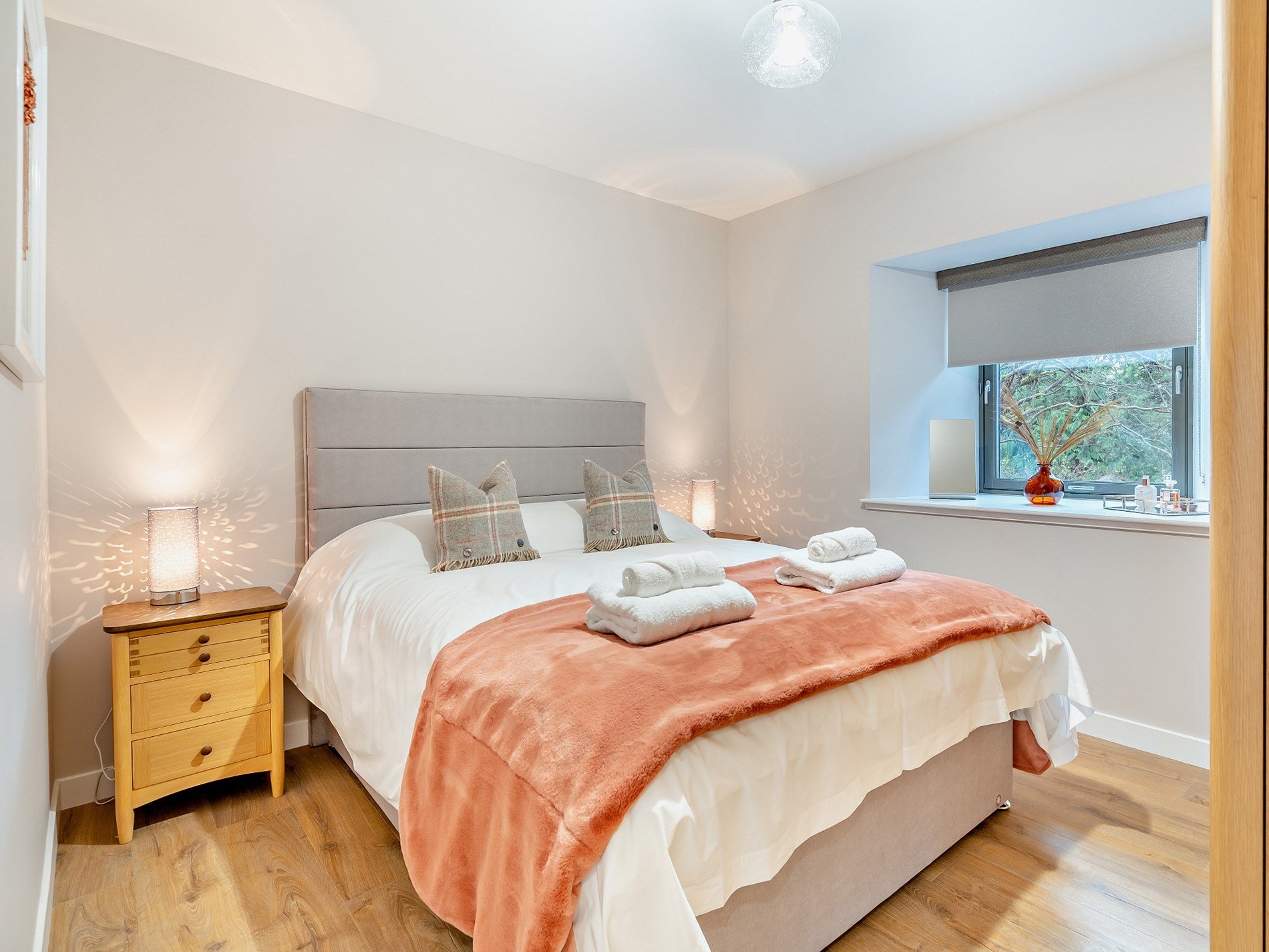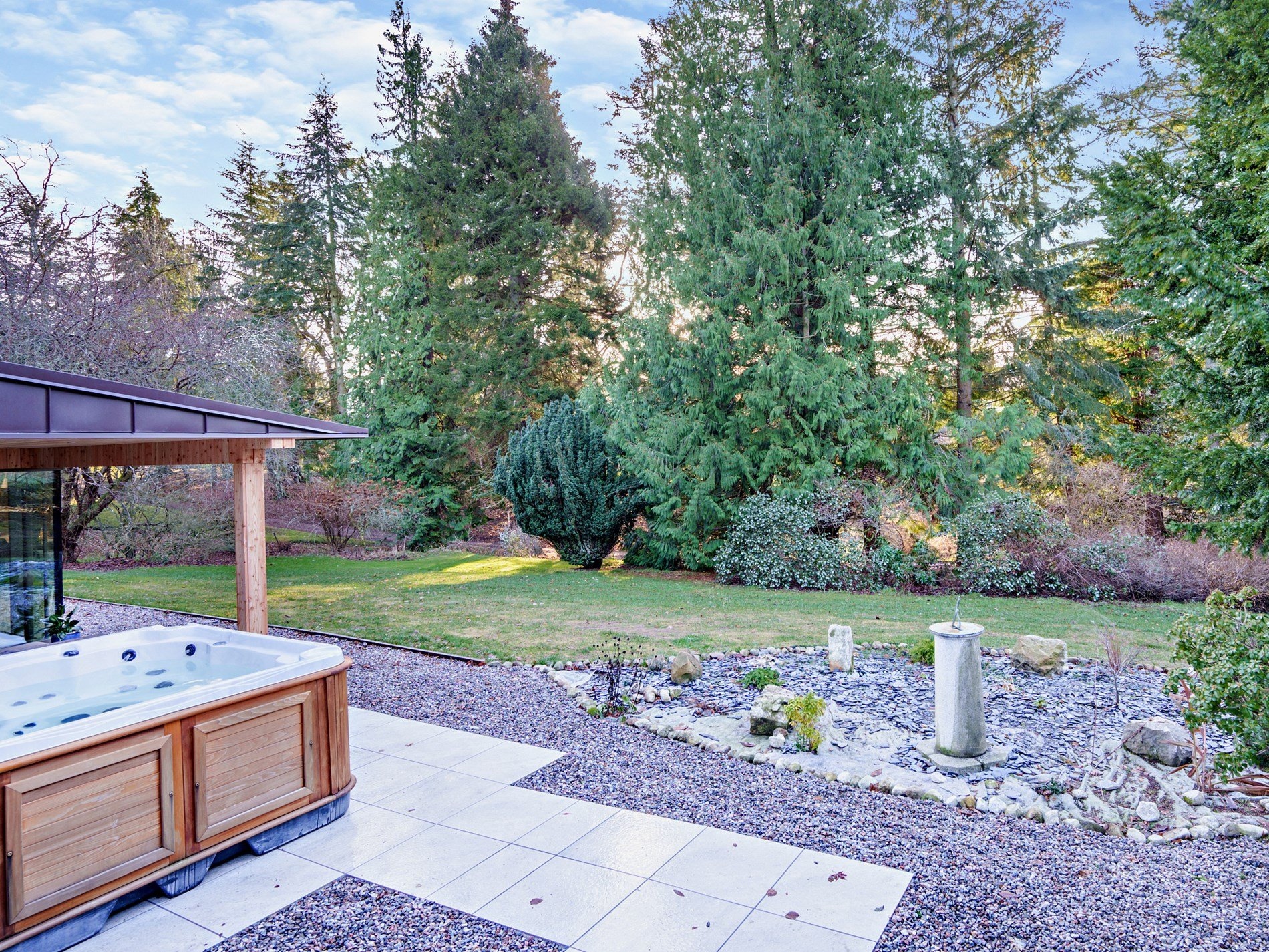 The outside patio area has been designed for use in all weathers with a covered lounging area within the large private garden. Next to the seating area, you can unwind and relax in the luxury hot tub set under the stars. Further into the garden, a short walk takes you to the waterfall which peacefully leads you to the nearby private lake, where resident swans gracefully glide, offering a picturesque scene to complete your holiday escape. Take a stroll in the private grounds and woodland, where patience may reward you with an encounter with one of the various wildlife residents, from red squirrels, badgers, deer and the elusive family of otters, to an array of birds such as kingfishers and buzzards.