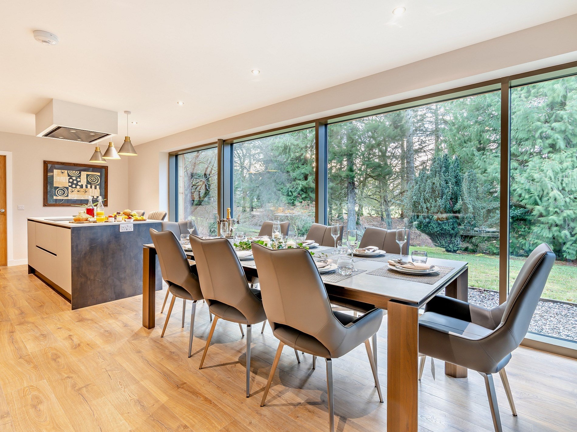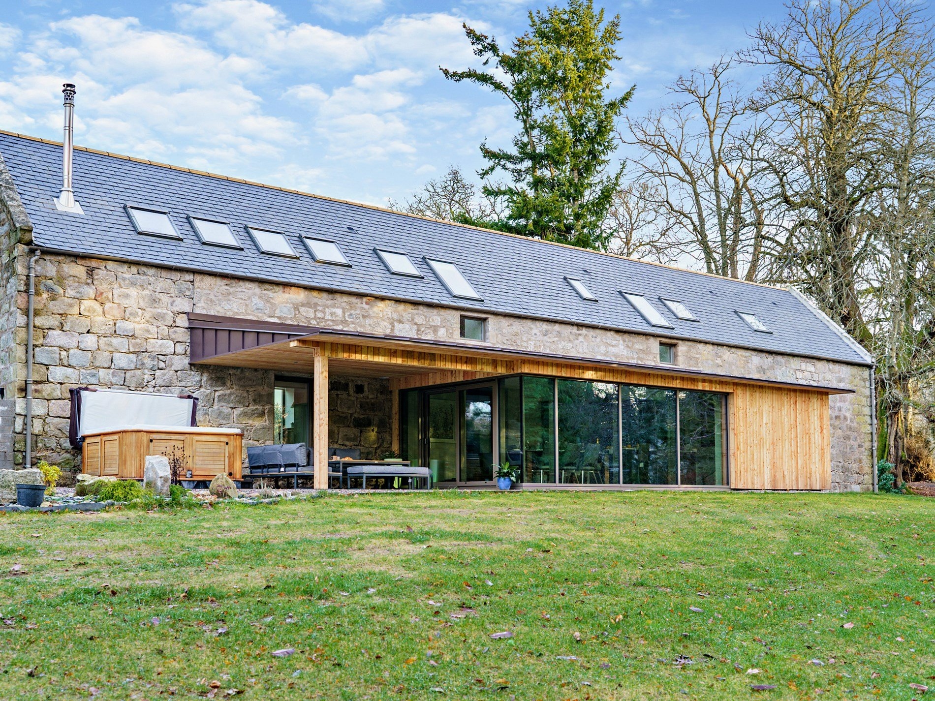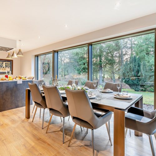 Offering Luxurious secluded Woodland Lodge self catering accommodation close the Aberdeen and the airport. Whether you’re a golf enthusiast, a keen fisherman, a beach lover, or a family seeking adventure, this Luxury woodland lodge home with relaxing Hot Tub and fishing Loch caters to your every desire. Tee off in style with renowned golf courses on your doorstep. From the unforgettable Cruden Bay Golf Club with the backdrop of Slains Castle, to the prestigious Trump International Golf Links and the historic Royal Aberdeen. Additionally, delve into the region’s whisky trails and tour iconic castles, savouring the area’s distinctive heritage. A short drive away, Balmedie Beach (8 miles) welcomes you with its golden sands and rolling dunes, while a trip to the countryside promises captivating scenery. For those seeking a bit more excitement, head to Aberdeen Beach (7 miles) for surfing or paddleboarding. Explore Aden Country Park (29 miles), a haven for families and nature lovers, or enjoy the grandeur of Haddo House (15 miles), with its history and stunning gardens. This immaculate property, nestled within an 18th-century private estate, offers a picturesque retreat where you can feel at home. It seamlessly blends the tranquillity of countryside living with the sophistication of contemporary design. Having also been recently awarded The Aberdeen Society of Architects Design Award 2025.