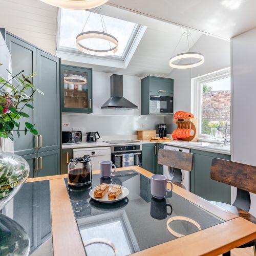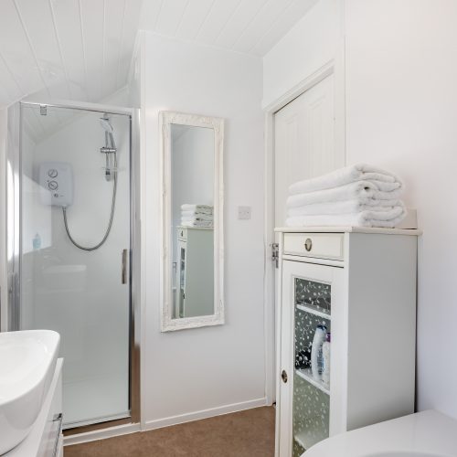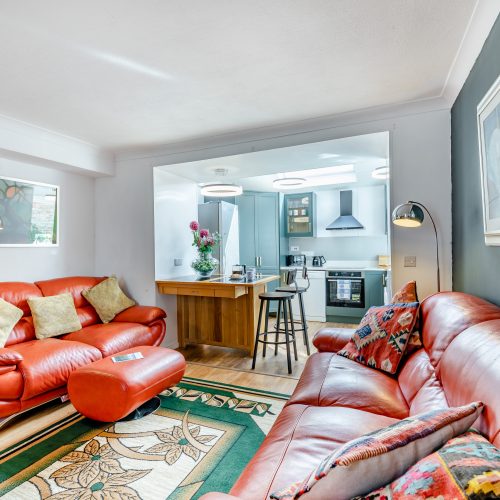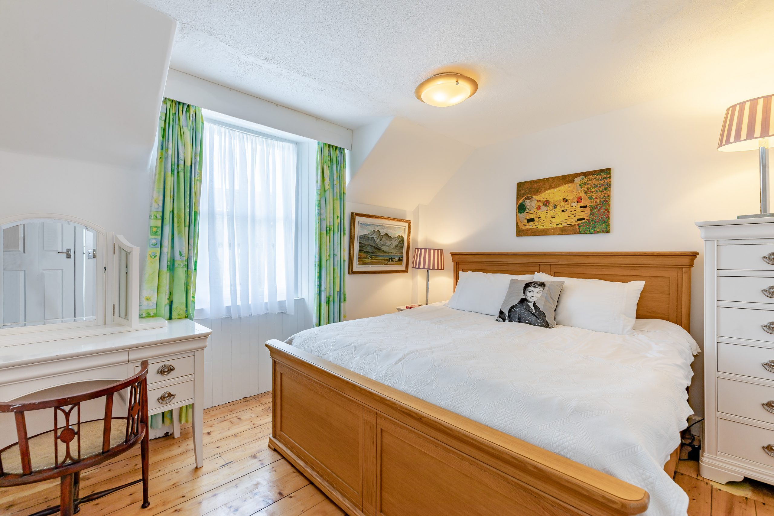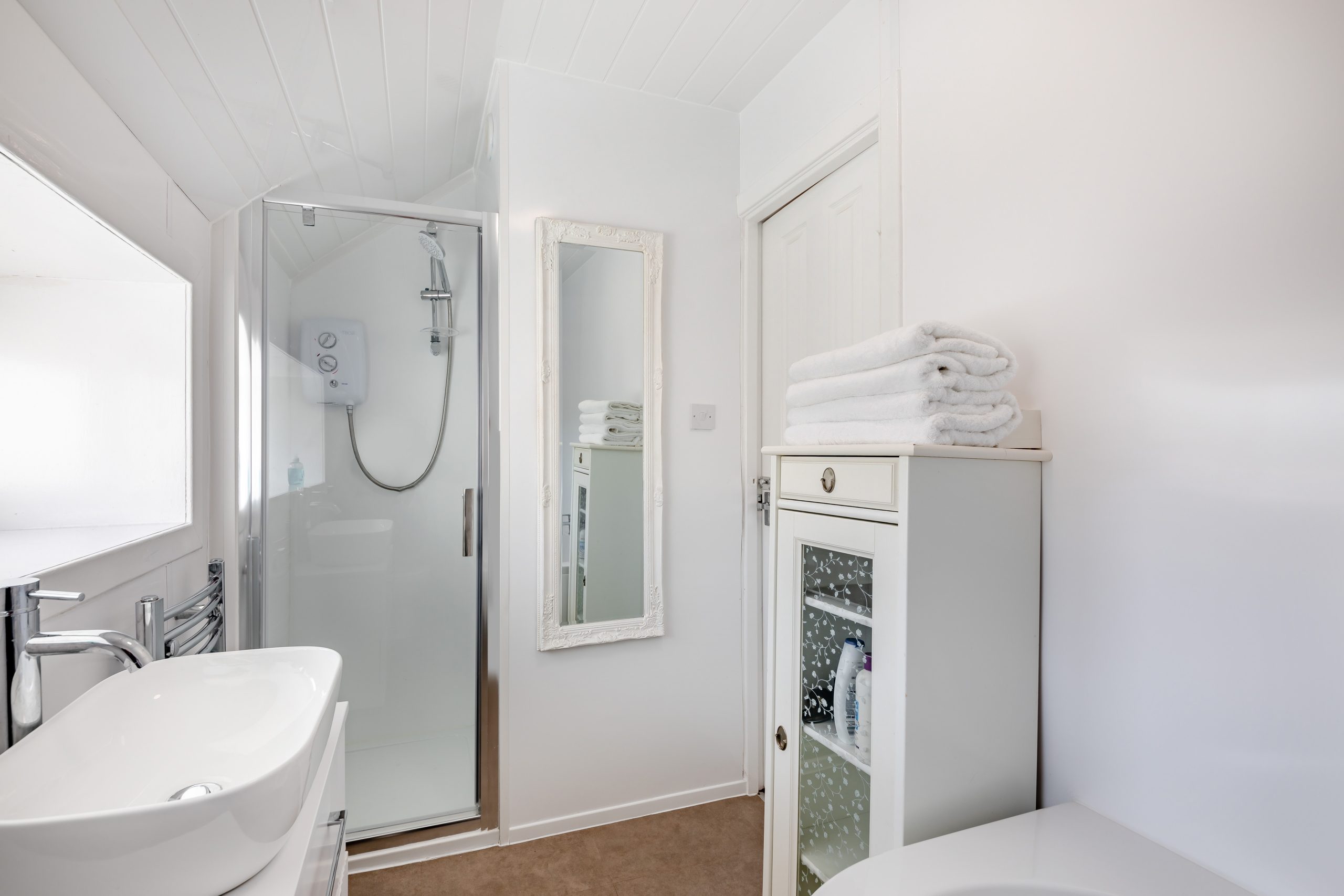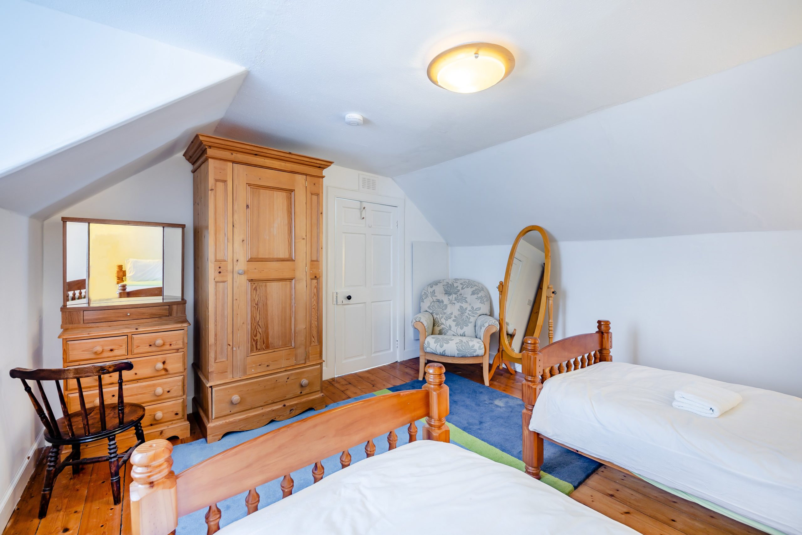 Step into the entrance hallway, which leads into the open-plan lounge/kitchen/diner at the heart of this home-away-from-home. Featuring a beautiful colour palette, along with homely touches throughout, this welcoming space perfectly blends rich heritage with contemporary elements, inviting you to unwind at the end of a long day. The roaring open fire sets the scene for ultimate relaxation. The well-equipped, modern kitchen allows you to cook up a feast for evening mealtimes served at the dining table. The breakfast bar with two stools is perfect for a quick drink before you head out for the day, and there is a useful shower room on the ground level too. Retire to the first floor to discover a wonderfully tranquil super-king-size bedroom with an en-suite bathroom, or climb the small flight of additional stairs to the generous twin bedroom tucked beneath the eaves, which showcases a characterful sloping ceiling and antique-style decor.