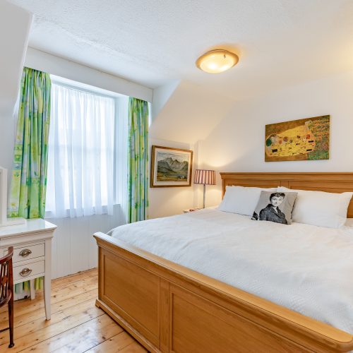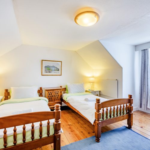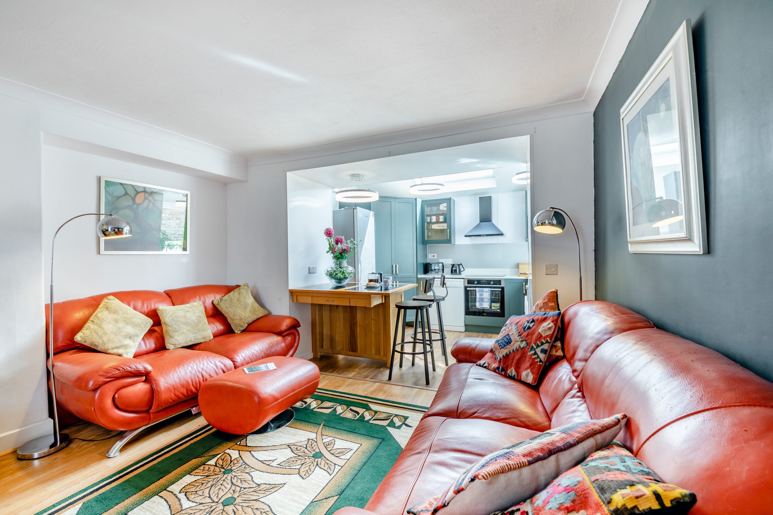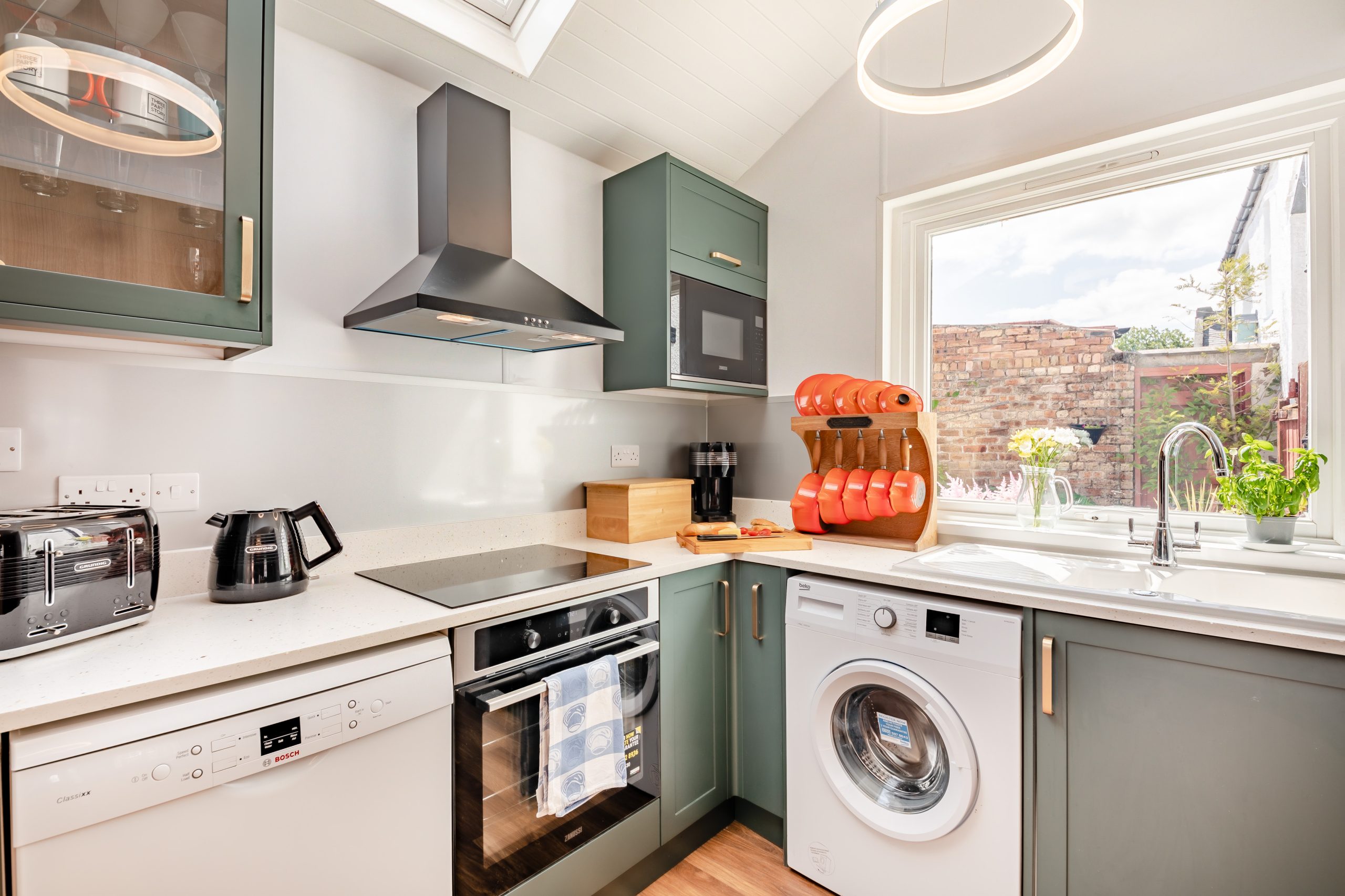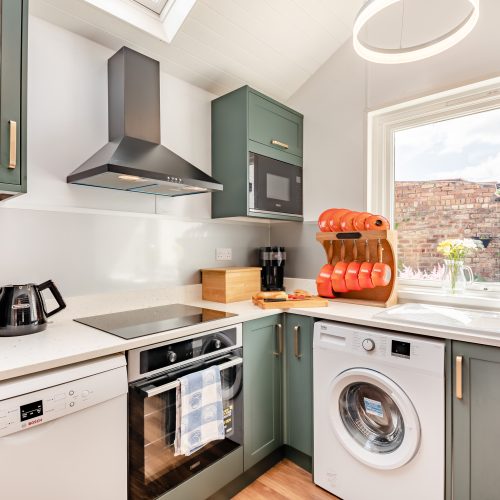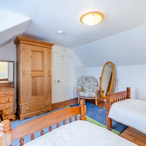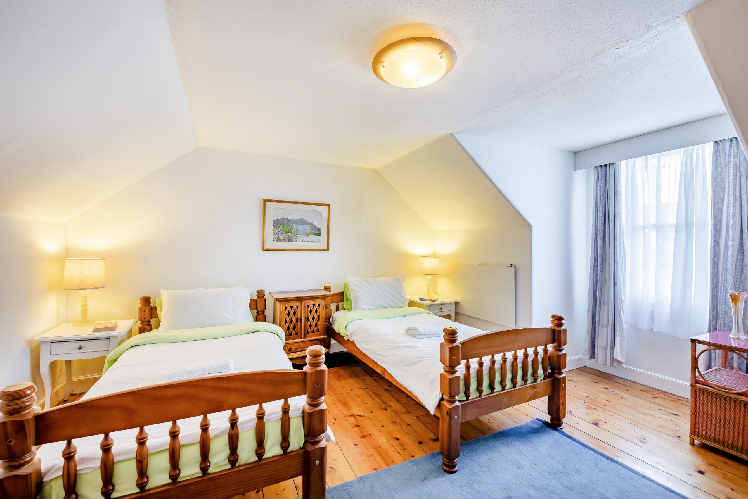 Step into the entrance hallway, which leads into the open-plan lounge/kitchen/diner at the heart of this home-away-from-home. Featuring a beautiful colour palette, along with homely touches throughout, this welcoming space perfectly blends rich heritage with contemporary elements, inviting you to unwind at the end of a long day. The roaring open fire sets the scene for ultimate relaxation. The well-equipped, modern kitchen allows you to cook up a feast for evening mealtimes served at the dining table. The breakfast bar with two stools is perfect for a quick drink before you head out for the day, and there is a useful shower room on the ground level too. Retire to the first floor to discover a wonderfully tranquil super-king-size bedroom with an en-suite bathroom, or climb the small flight of additional stairs to the generous twin bedroom tucked beneath the eaves, which showcases a characterful sloping ceiling and antique-style decor.