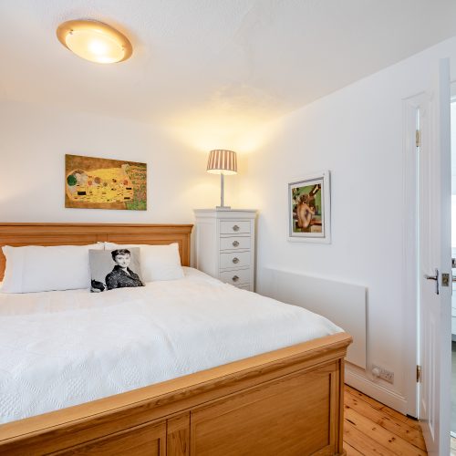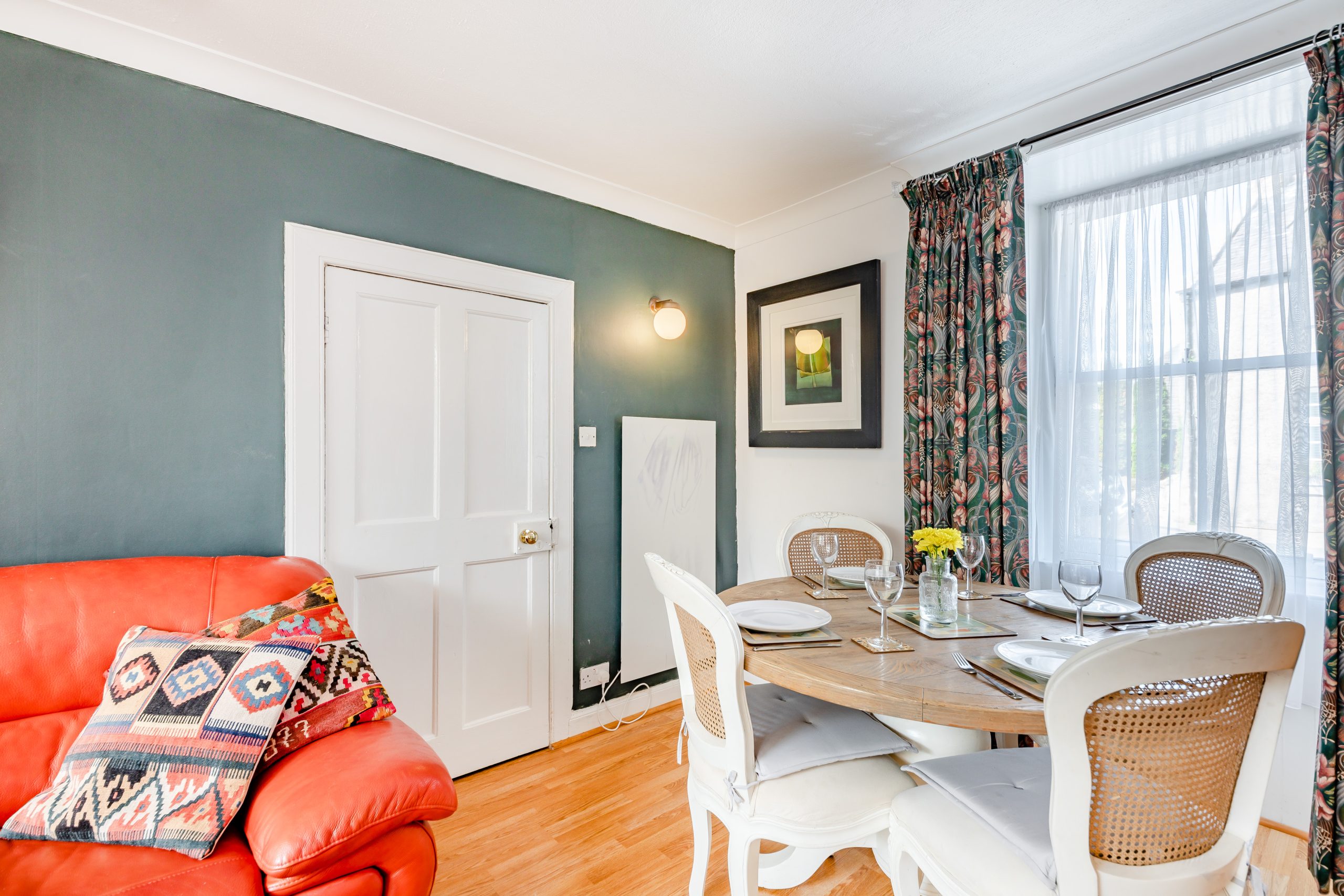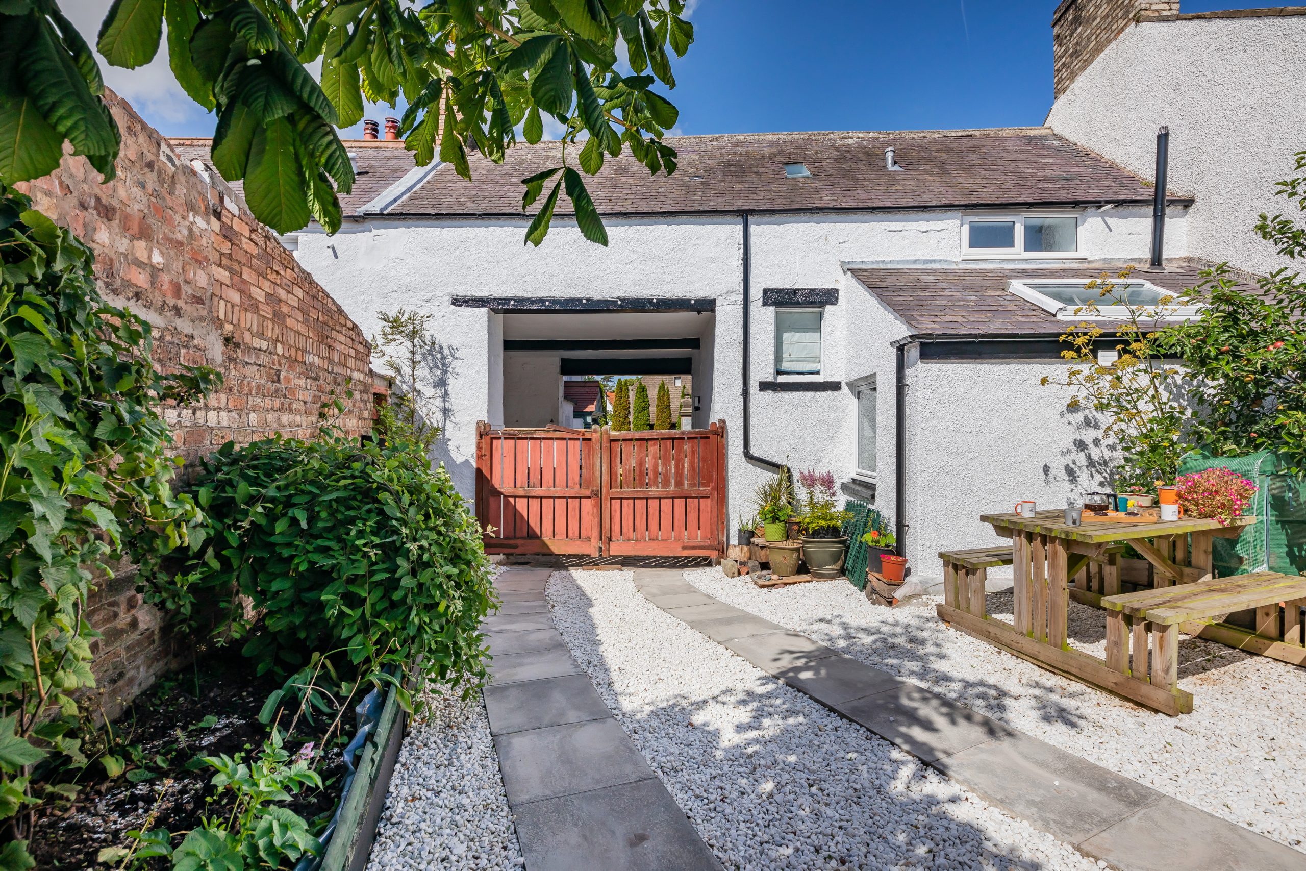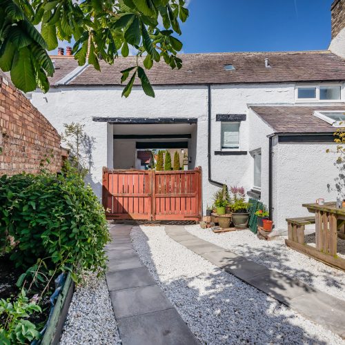 Outside, through a wooden gate, you’ll find a delightful, shared courtyard with a picnic table and bench seating, the perfect spot for al fresco dining or simply relaxing as you enjoy the last of the evening’s sunshine. Private parking for one car is available at the property.