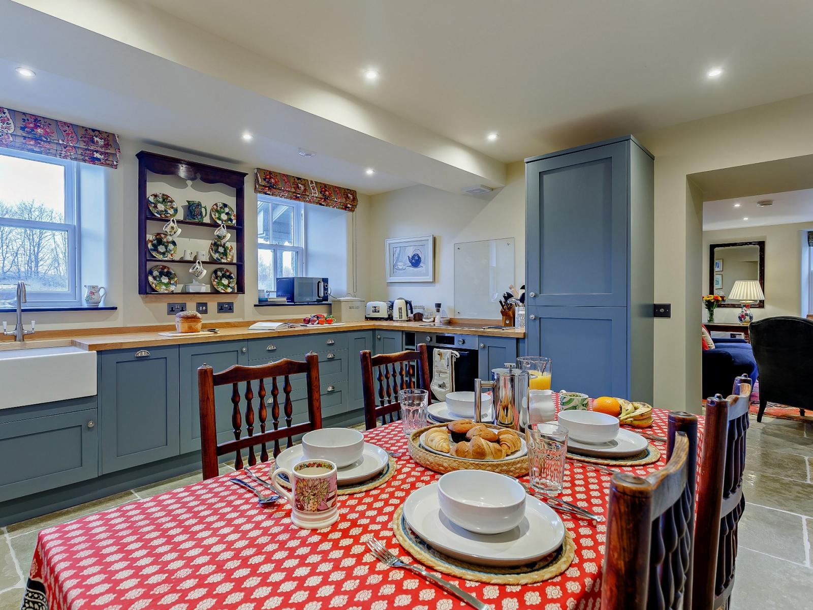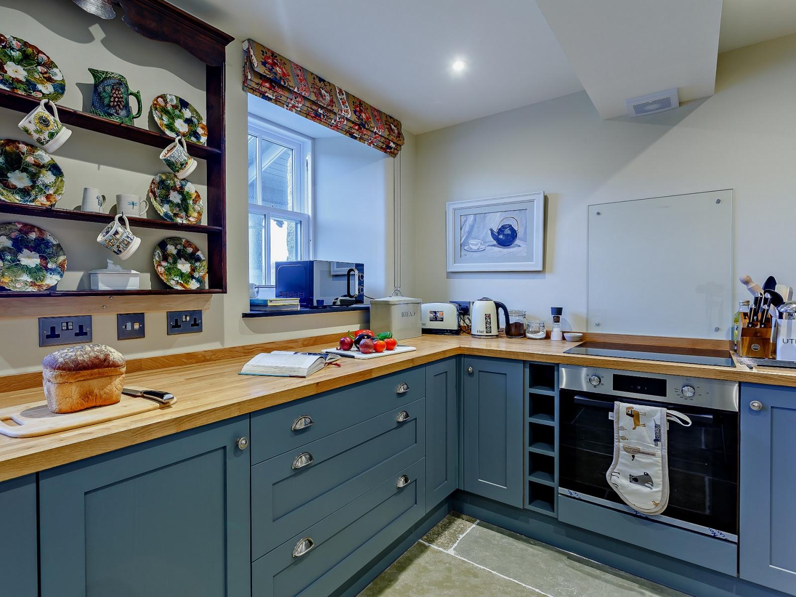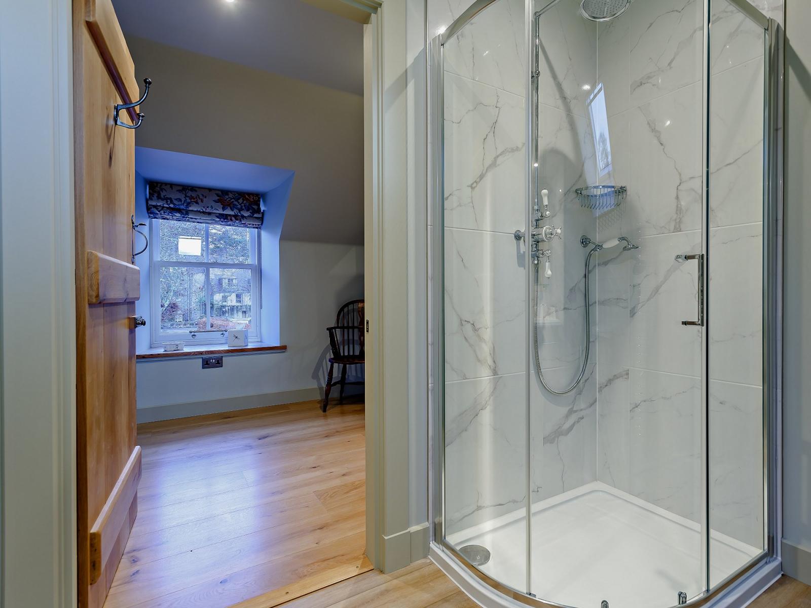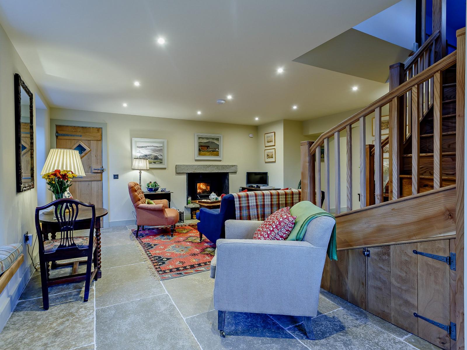 On entering this elegant holiday home, you’ll step straight into the delightful and welcoming lounge, which is an ideal space to relax with a seating area overlooking the river. The lounge area features a comfortable sofa where you can unwind and watch your favourite movie on the Smart TV. On chilly evenings, cosy up in front of the wood burner after a day spent exploring the scenic surroundings. The kitchen area offers all the equipment you need to rustle up a bite to eat with local produce purchased on your travels. When ready, set the dining table and enjoy a family meal whilst planning your holiday activities. Completing the ground floor is a utility room with a washing machine and dryer and a bathroom with a bath and WC. Heading up the stairs you have two beautifully decorated bedrooms, a double and a zip-and-link king-size both with en-suite shower rooms.